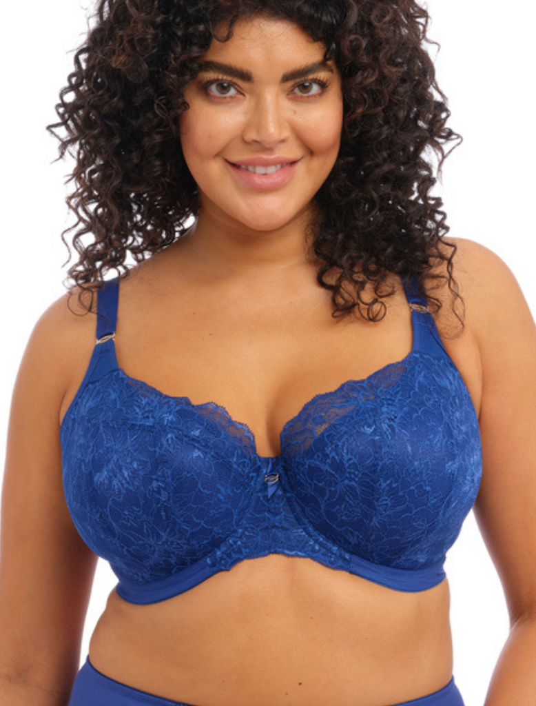 The Elomi Brianna Underwire Padded Half Cup Bra in Lapis This bra features a flat lace with a floral design, this collection is one that is guaranteed to transform not just how you look but how you feel too.