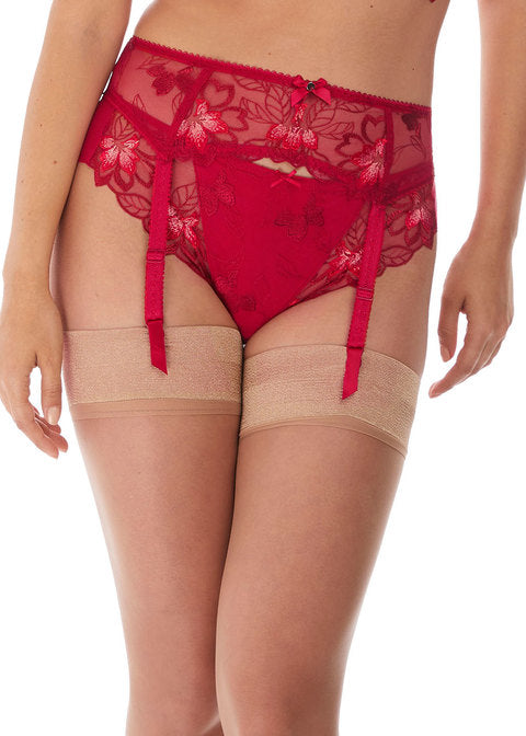 The Fantasie Leona Suspender Belt, Red has the following features: