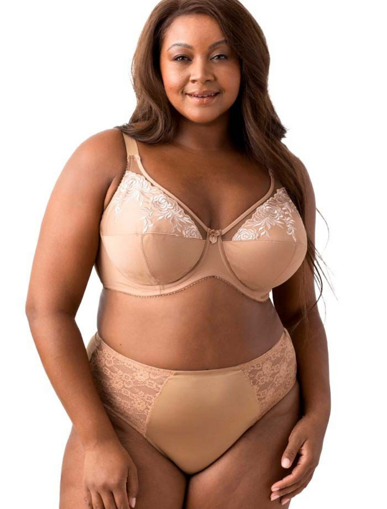 - Realza tu silueta natural con los elegantes sujetadores Elila, incluido el sujetador con aros bordado en color moca