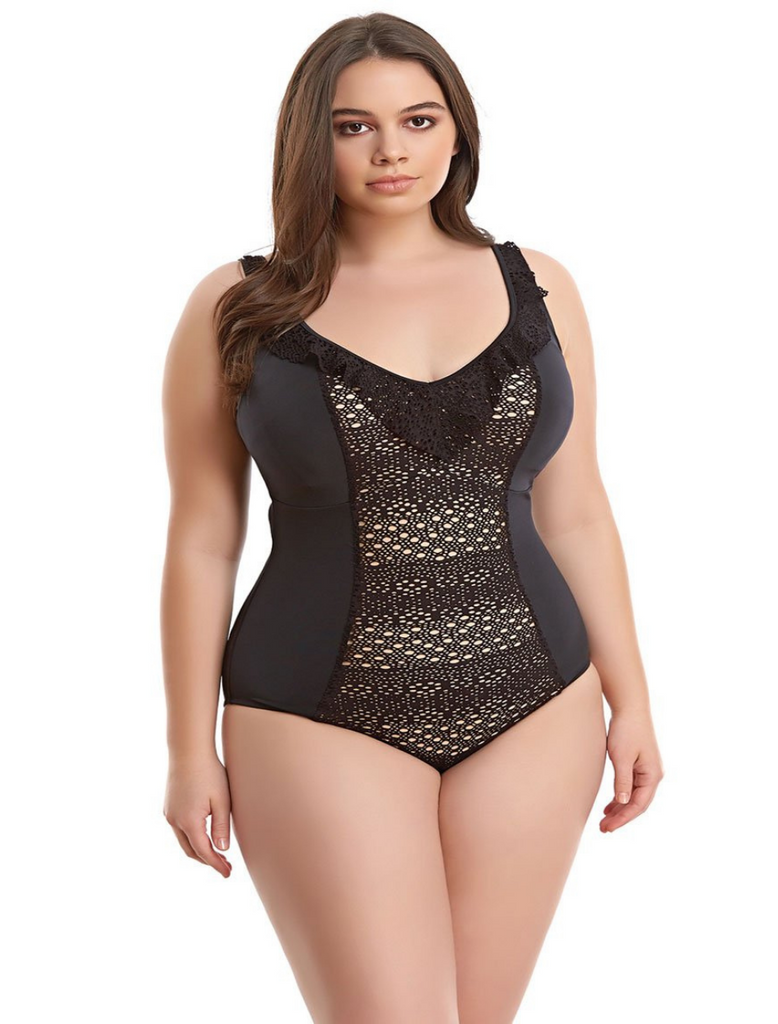 El traje de baño de una pieza moldeado Indie Swim de Elomi en negro tiene control y estilo en una sola pieza inalámbrica. Los maravillosos tejidos firmes y controladores significan que recibirás una excelente forma y un soporte firme, especialmente si tienes tallas de copa más grandes. Las cómodas y firmes telas de Lycra te ayudarán a brindarte un pecho sostenido y las copas de espuma ligeras y sin costuras suavizarán tu silueta. El panel frontal grande de crochet tiene un aspecto delicado con una base de color arena, también hay un escote en forma de V con volantes que le brinda un estilo favorecedor.
