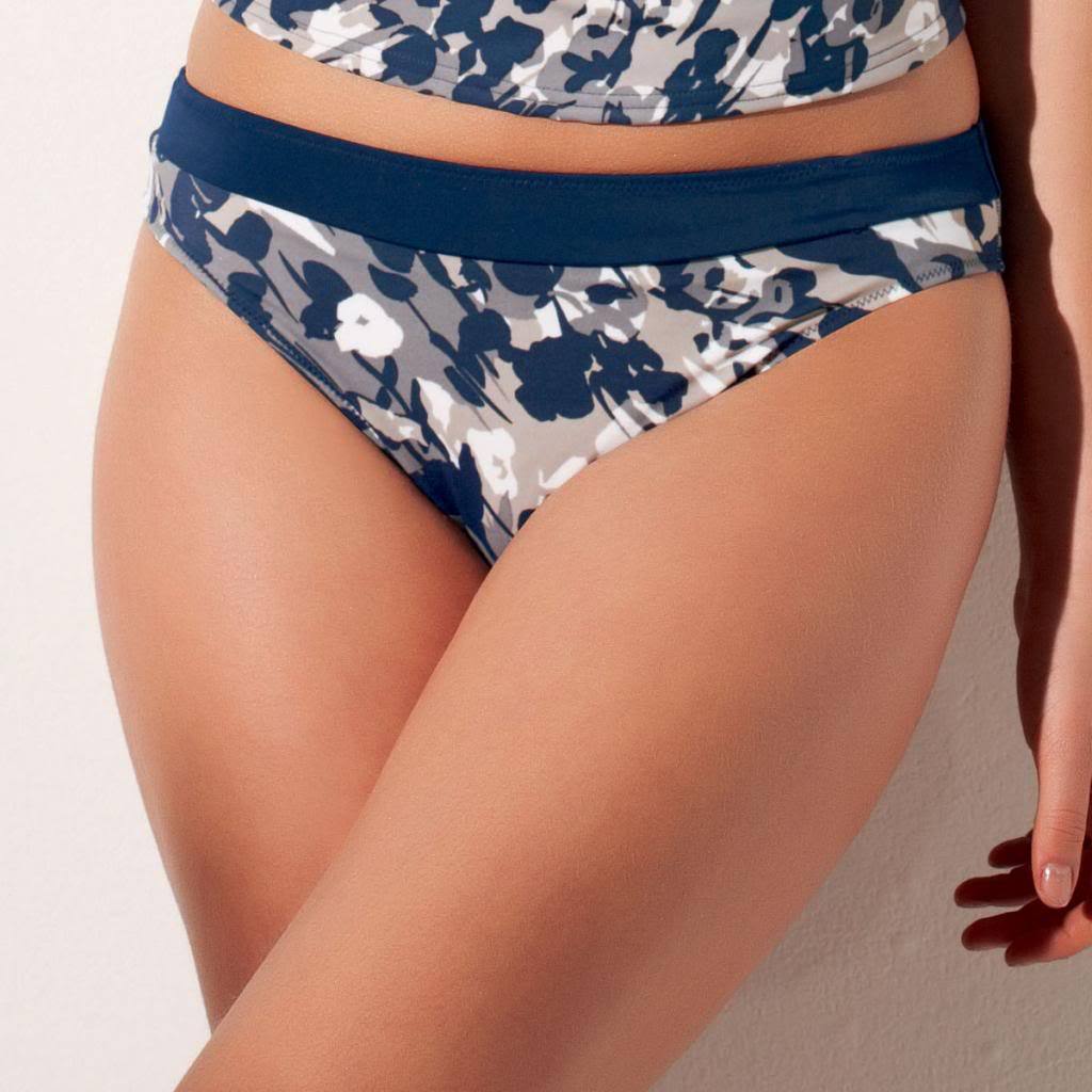 Braguita de bikini Fantasie Toronto, azul marino con una impresionante cinturilla floral en contraste. La braguita Black Bikini tiene una cinturilla floral de gran tamaño. La colección de trajes de baño Fantasie tiene una cinturilla en contraste y se puede usar como una prenda de baño mixta y combinada.