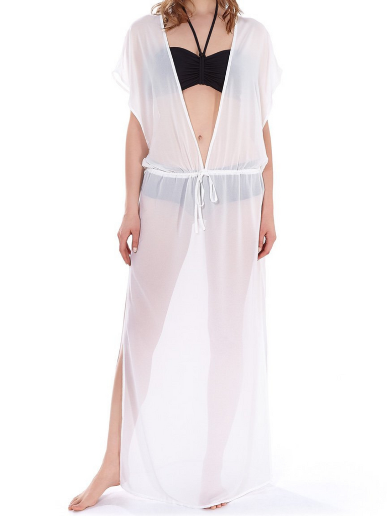 El vestido largo Freya Diva con escote pronunciado en blanco te llevará sin esfuerzo de la playa al bar con un estilo y clase sofisticados. La impresionante tela transparente te mantendrá fresco mientras protege tu modestia. Este vestido de playa largo de estilo largo tiene un favorecedor cuello en V abierto al frente con aberturas laterales.