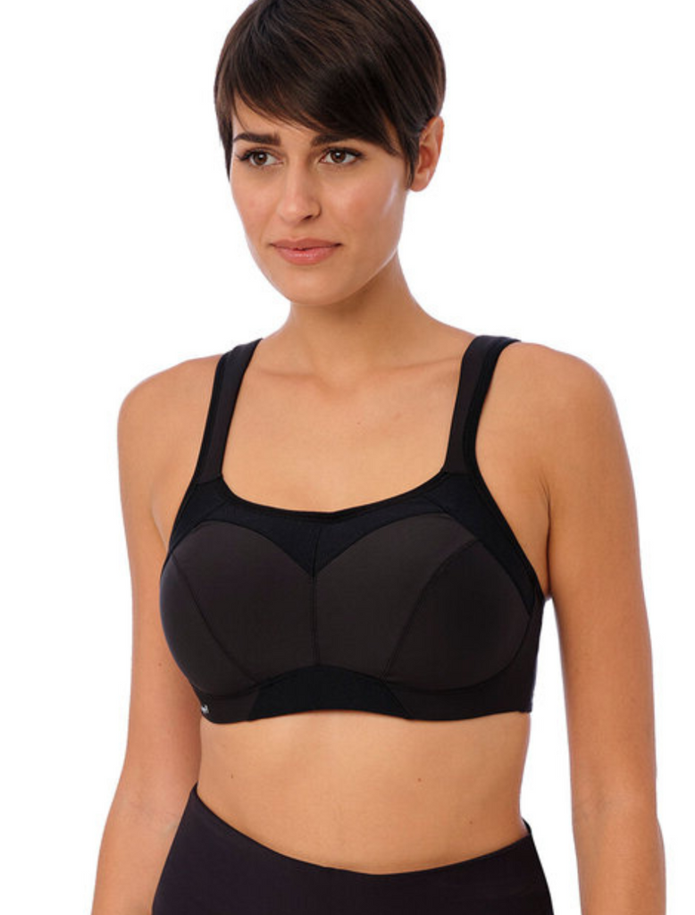 Sujetador deportivo Freya High Octane Sujetador deportivo moldeado con aros, Negro | Sujetador deportivo negro de cobertura total | Sujetador deportivo moldeado negro