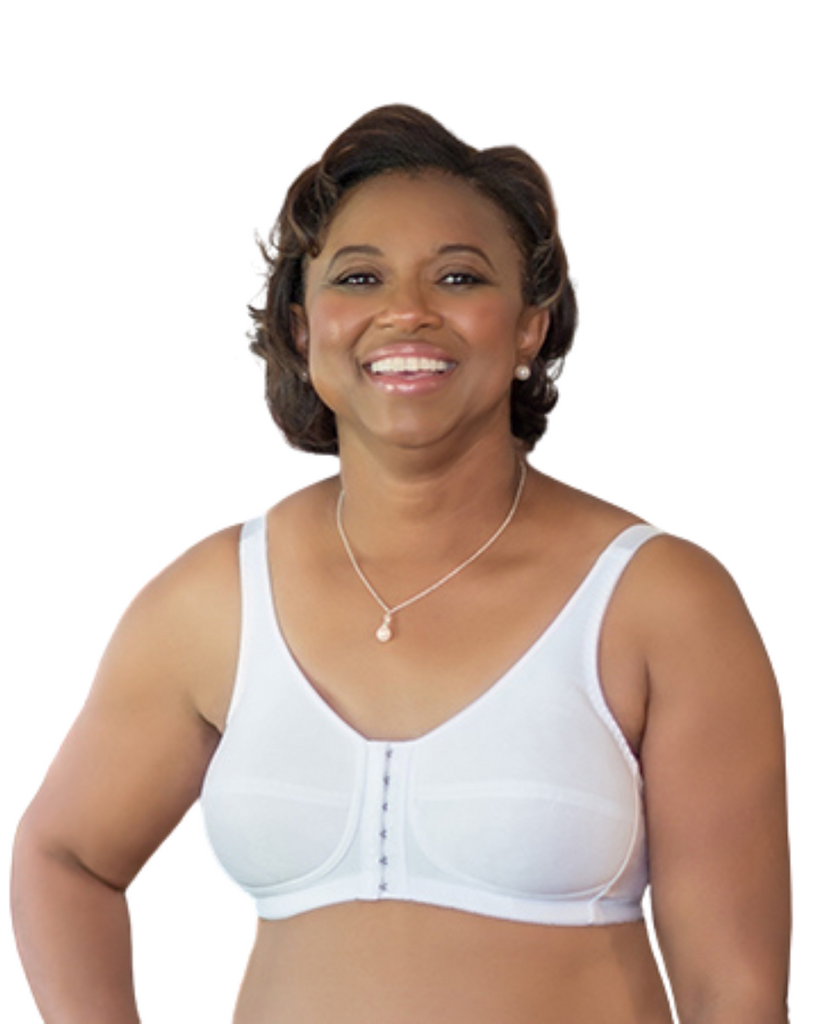 American Breast Care 123 Front Close Rose Contour Bra, White | White Front Closure Mastectomy Bras