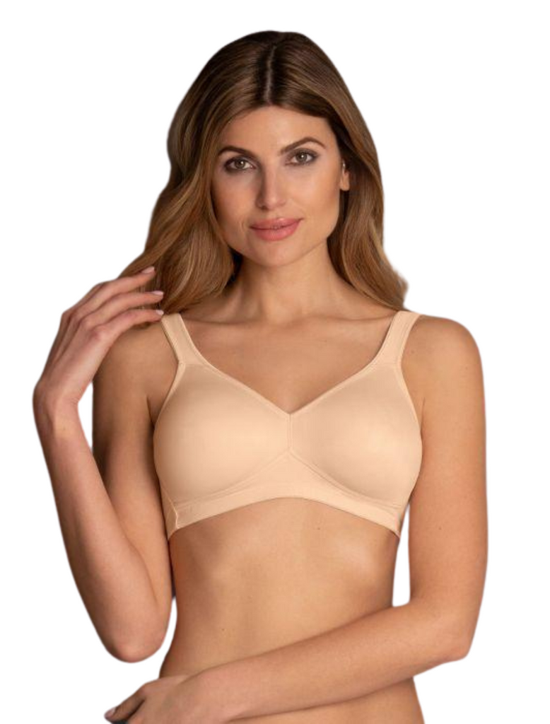 The Anita Rosa Faia Twin Seamless Comfort Soft Cup Bra, Desert is from the best selling Anita twin collection. The double layered seam free T-Shirt bra give full coverage and is produced without the need for underwire. The non wired bra has preformed cups to generate the secure yet comfortable feeling. The non padded cups are great under tighter clothing and gives a seamless appearance without increasing size. This high quality breathable microfiber works well when you have to wear your bra for longer periods of time. This bra has adjustable shoulder straps and has a hook and rye closure at the rear.