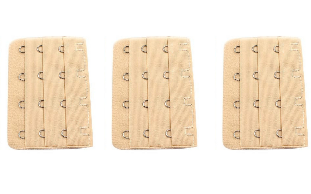 Braza Bra Back Extenders 4 Hook, in Nude. Pack of 3 extenders are idea for when you need that little bit more space in your band. These extenders have been developed so that you can wear that bra that might be just a little too small. These are the ideal solution for when you need that extra space, until your bra band has stretched. It also means you don't need to throw out a perfectly good bra!