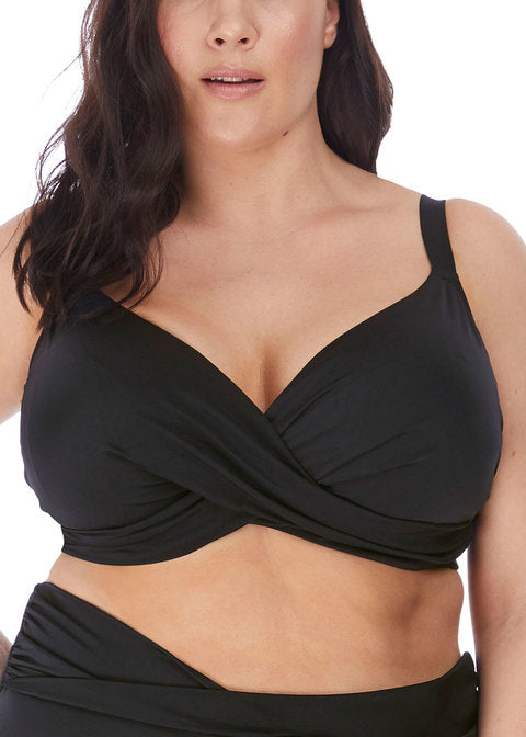 The Elomi Magnetic Uw Plunge Bikini Top, Black has a beautiful style including flattering twist front designs, strapping details and ‘barely there’ flesh tone panelling.
