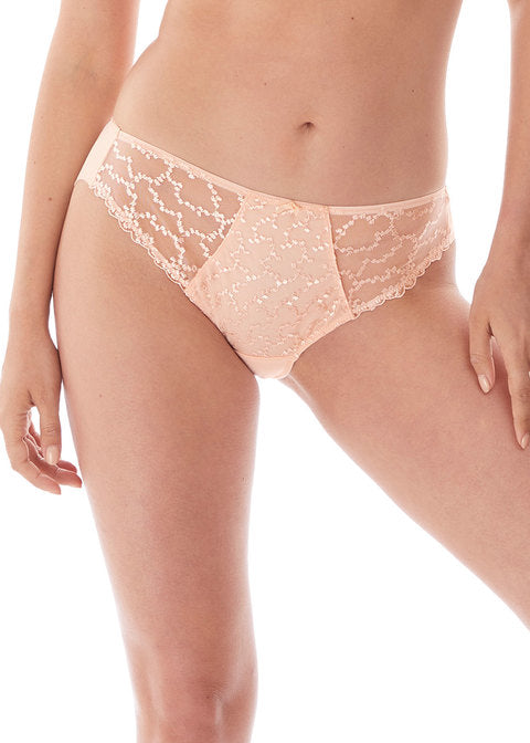 The Fantasie Ana Panty, Blush the perfect combination of style and extra comfort this panty features all over embroidery lined front panel for modesty and comfort and seamless so you can use under your favorite outfit!