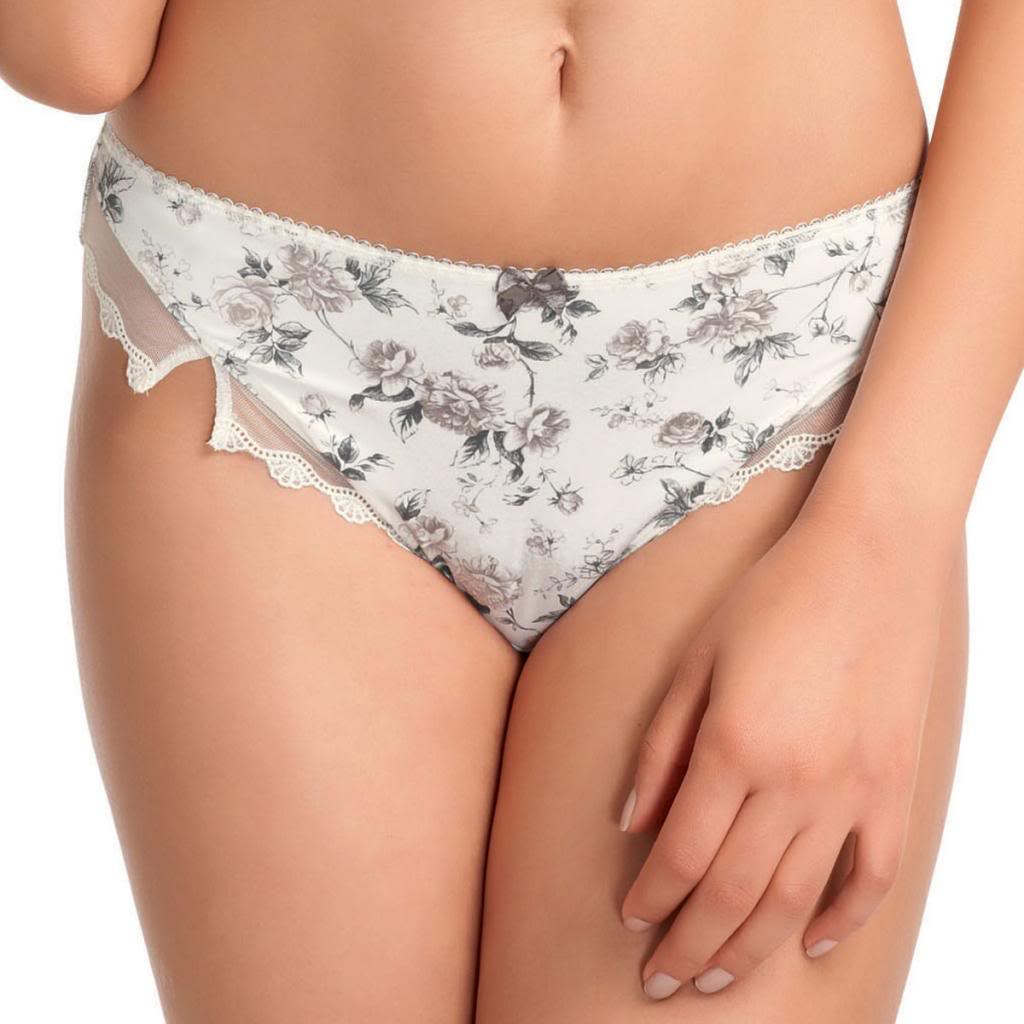 The Fantasie Delilah Brazilian Thong is a luxurious masterpiece featuring a beautiful Vintage inspired Rose print in palette of Charcoal and Gray across a cool Ivory base. The Brazilian Thong is designed to give you less coverage with a wider back and front panel with higher sides detailed with a semi-sheer mesh trimmed with an adorable lace and finished with a central front cute bow.