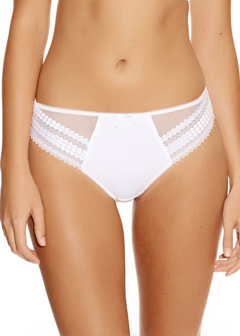 The Fantasie Rebecca Panty, White Crafted with a soft and breathable fabric this panty offers a natural shape and a beautiful geometric design.