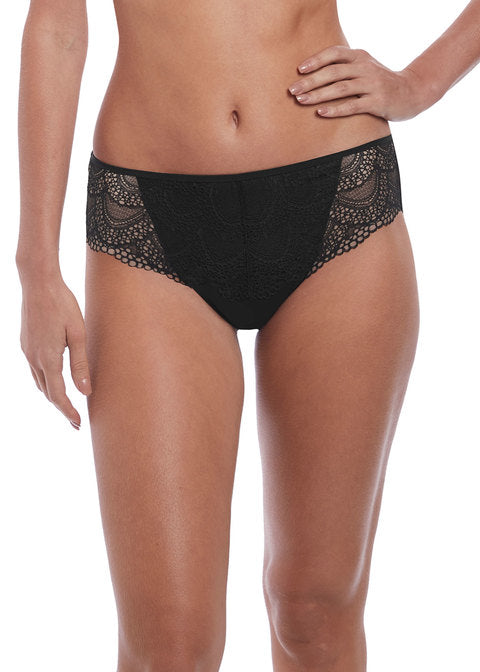 The Fantasie Twilight Panties, Black a beautiful stretch crochet look lace through the center front and leg edge. with an elegant and contemporary look that you will love.