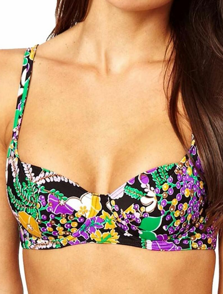 Freya Adelphi Underwire Balcony Bikini Top, Black with the Multi color floral print.