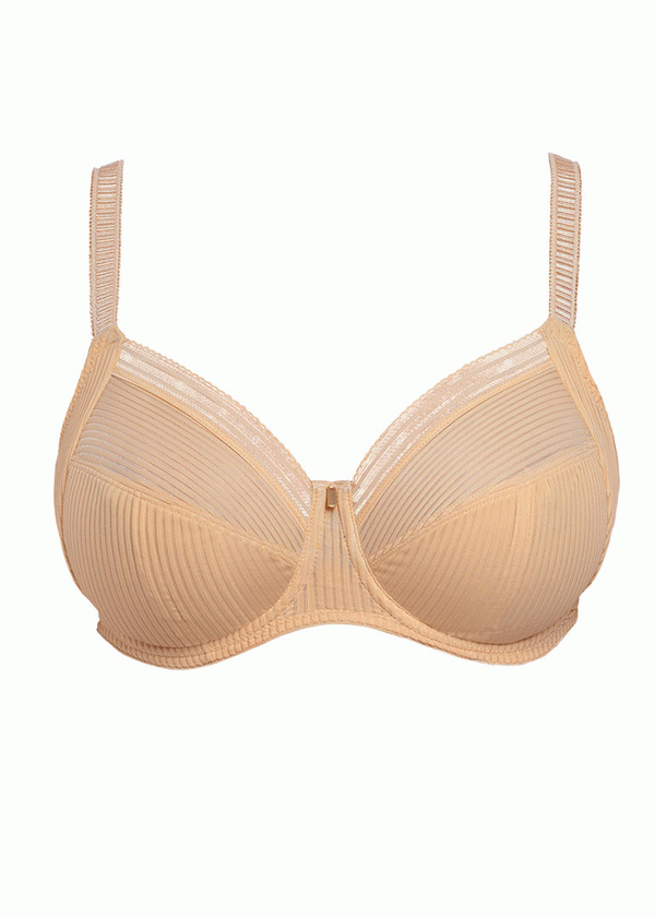 Another fabulous Freya Jolie Under wire Plunge Balcony Bra in white that will certainly endear itself with all the girls that try this on, The plunging neck line as the name suggests is amazing in the way it keeps you comfortable and also sexy at the same time. This is not a plain bra due to the lace finish but it can be worn as an every day bra or on a night on the town. The amount of movement in the adjustable straps is good and is situated to the bottom on the rear of the straps, with the same color metal fixings. The same color underband is arched upwards to give more relief in that area. the key feature of this bra are: