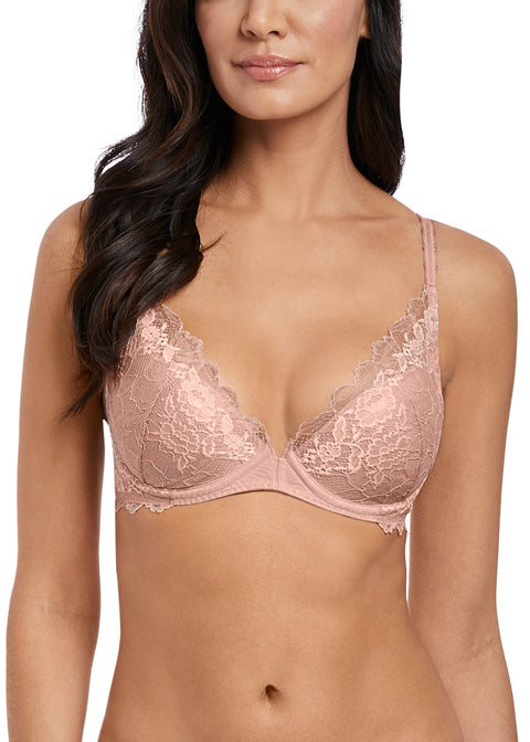 Wacoal Lace Perfection Plunge Push Up Bra, Rose Mist